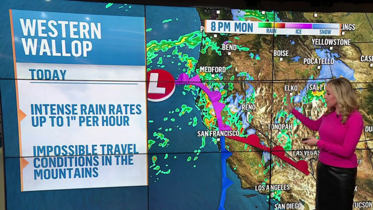 Heavy rain, mountain snow, thunderstorms and windy conditions forecasted for West Coast for next three days. NBC News meteorologist Michelle Grossman has the details on Early Today.Feb. 19, 2024