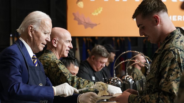 President Joe Biden and First Lady Jill Biden visited service members and their families and served a “Friendsgiving” dinner at the Marine Corps air station in Cherry Point, North Carolina.Nov. 22, 2022