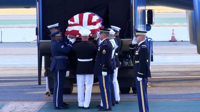 A U.S. military plane transporting the remains of Senator Dianne Feinstein arrived back in California. Feinstein’s casket was carried onto a hearse as her loved ones watched.Oct. 2, 2023