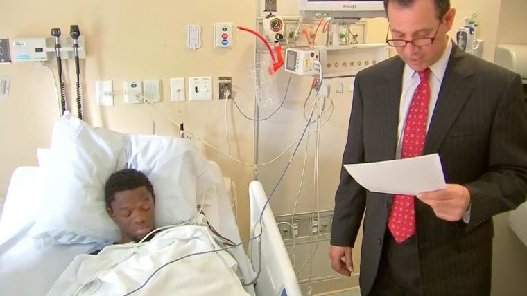 Bampumim Teixeira, 30, was arraigned on two counts of murder before a judge in his hospital room at Tufts Medical Center in Boston.May 8, 2017