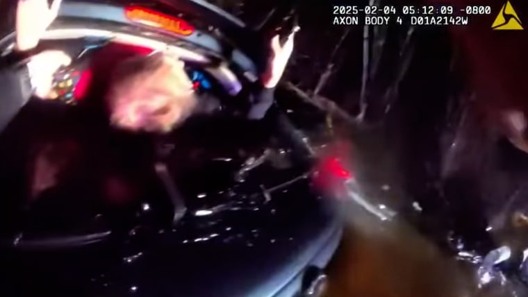 Bodycam footage shows a Marin County, Calif., deputy pull a driver from a car submerged in flooded creek waters after a crash.Feb. 7, 2025