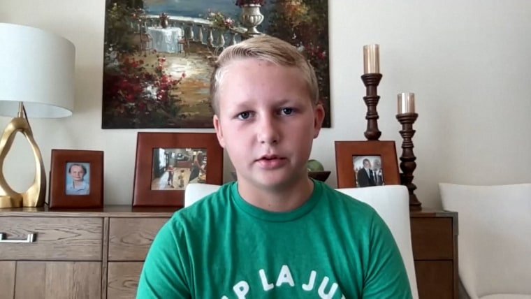 Kaelan Kubena, 11, describes his counselors' heroism as they worked to safely evacuate campers from rising floodwaters along Texas' Guadalupe River.July 7, 2025
