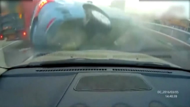 NBC News/Topic, NBC News/Topic/Asia, NBC News/Topic/World, Dashcam video from Dongguan City shows two determined drivers combining to flip a car onto its roof on a busy highway.March 15, 2016