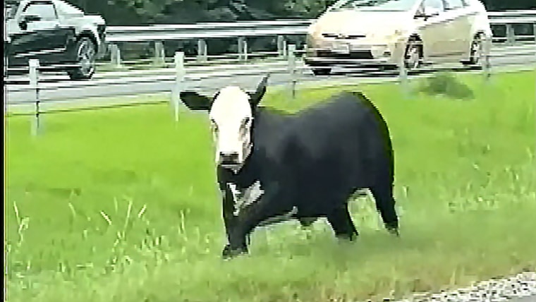 A cow running loose was chased by police through the middle of the Interstate Highway 65 in Alabama on Wednesday.Aug. 4, 2022