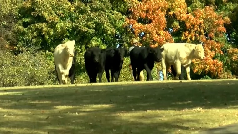 Nearly a dozen cows escaped into a Louisville, Kentucky, park after a semi-truck hauling the livestock was involved in a crash. Officials were able to use fencing to wrangle most of them back into the truck while police deployed a helicopter to help locate four other cows hiding in nearby woods.Oct. 22, 2022
