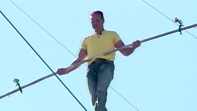 Aerialist Nik Wallenda, who previously walked across New York’s Niagara Falls, takes his high-wire act to Florida, attempting a tightrope walk above downtown Sarasota.Jan. 29, 2013
