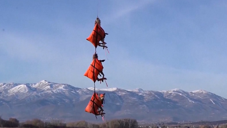 Looking a bit like Santa's sleigh in a fix, three deer were airlifted to have GPS collars fitted by the Utah Division of Wildlife Resources.Dec. 21, 2023