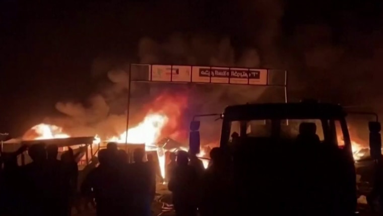 There were horrific scenes from Rafah after an Israeli airstrike hit a tent encampment sheltering Palestinians displaced from other parts of Gaza, setting off a raging fire and killing dozens. NBC News' Claudio Lavanga reports for Early Today. May 27, 2024