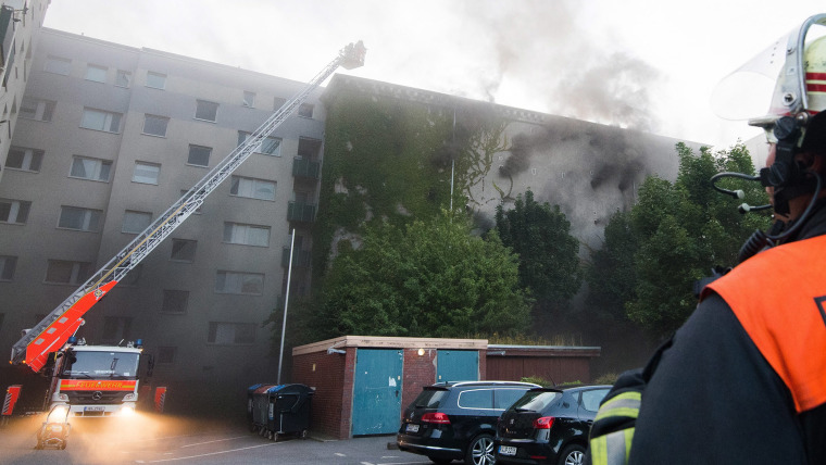 Fire at former World War II bunker in Hamburg, Germany, broke out in carpentry workshop in the six-story building.Aug. 4, 2015