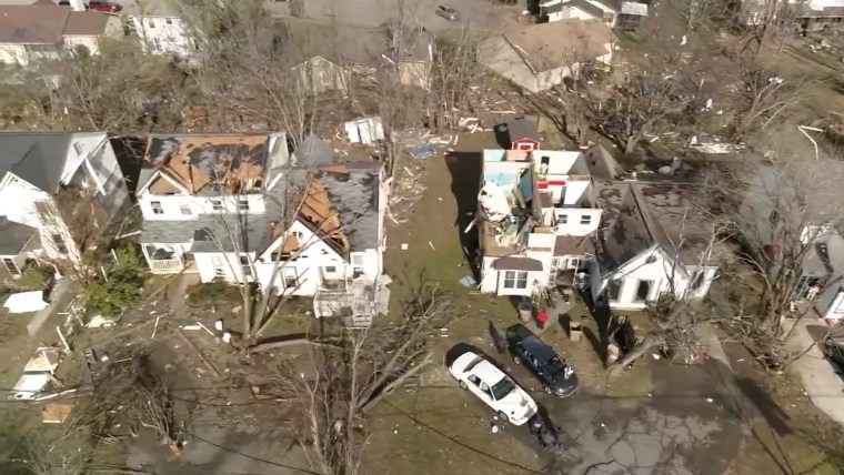 Drone video captured the destruction in a Tennessee neighborhood after a deadly tornado hit the region. At least six people died including a toddler in the storm.Dec. 11, 2023