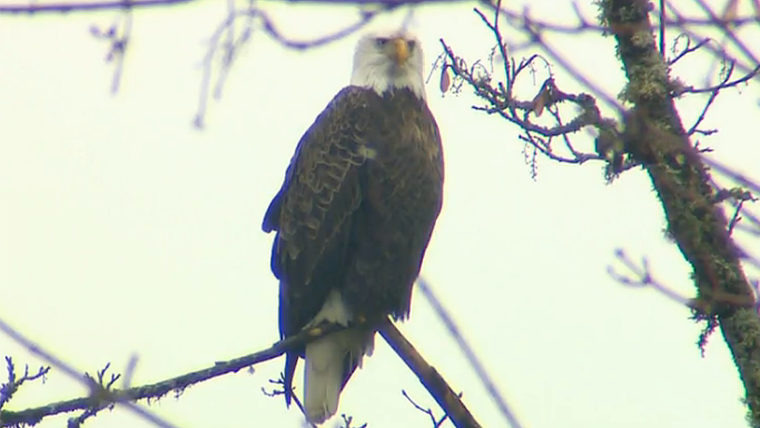 More than 150 eagles have converged on a small area along Washington's Nooksack River to feed on salmon, drawing crowds of birdwatchers and photographers as well. KING's Dan Cassuto reports.Dec. 24, 2015