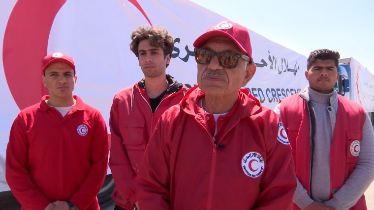 Humanitarian groups have denounced Israel for delaying and rejecting aid bound for Gaza as a line of trucks waited on the Egyptian side of the Rafah border crossing. NBC News spoke with Engineer Mohamad Nossair, head of operations for the Egyptian Red Crescent, about the difficulties of sending aid into Gaza amid the delays.March 24, 2024