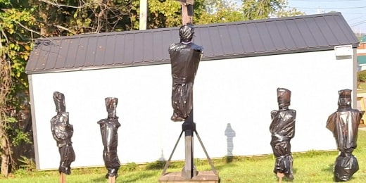 Man accused of terrorist threats over allegedly depicting local officials in Halloween decorations