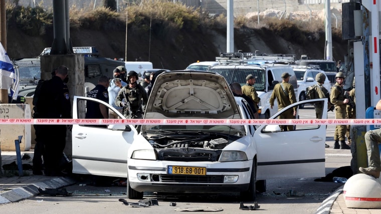 Three gunmen opened fire at a crossing in Jerusalem, injuring seven people before they were shot dead by officers, a police spokesperson told NBC News.Nov. 16, 2023