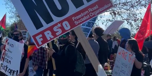 Hundreds protest ICE not far from Super Bowl stadium