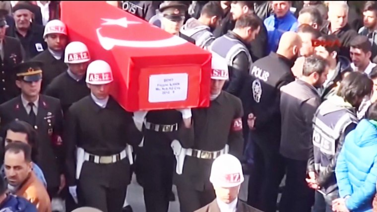 Mourners in Turkey gathered to grieve the loss of a soldier killed in Wednesday’s bomb blast in Ankara.Feb. 18, 2016