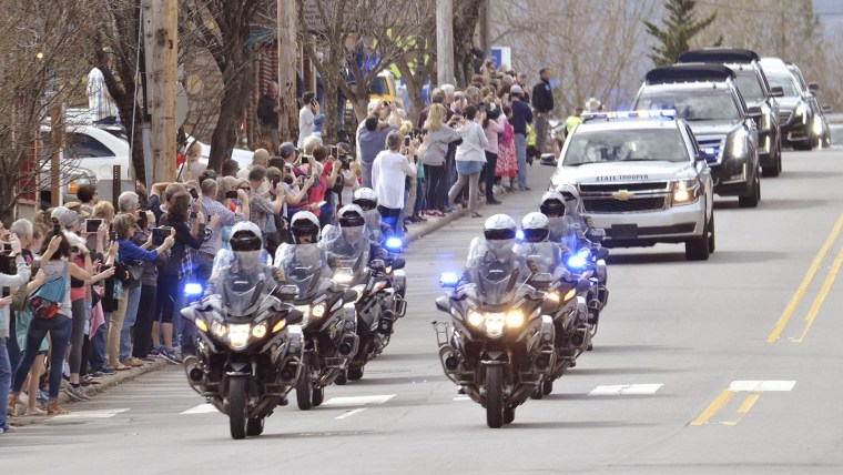 Motorcade carrying Billy Graham's body passes through Black Mountain, N.C., before heading to Charlotte, the evangelist's final resting place.Feb. 24, 2018