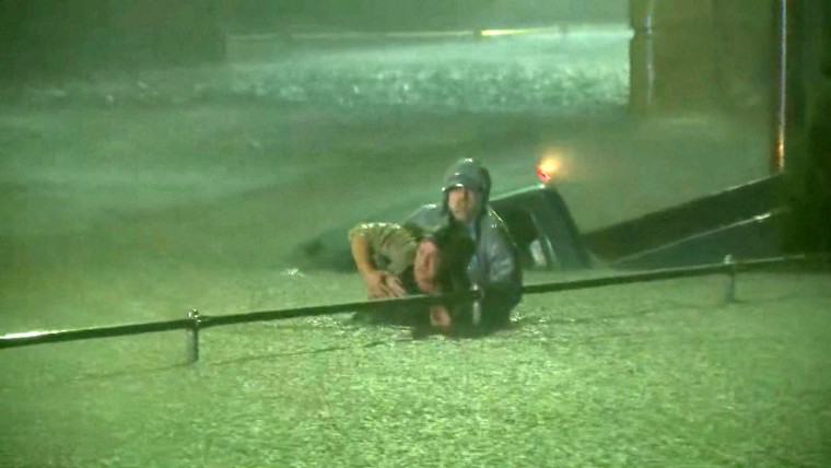 A bystander went into a flooded underpass in New Orleans to rescue a pickup truck driver who drove into the floodwaters and saved him on live television.Sept. 12, 2024