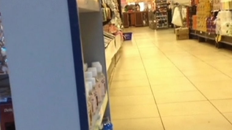 Video recorded by a reporter from the Chinese state TV network shows customers running and hiding inside a supermarket as gunshots ring out during a militant attack in the Westgate Mall in Nairobi, Kenya.Sept. 23, 2013