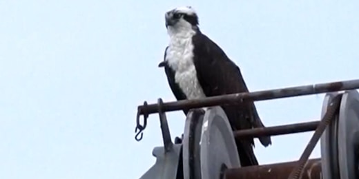 Ospreys halt construction after making a nest on a crane