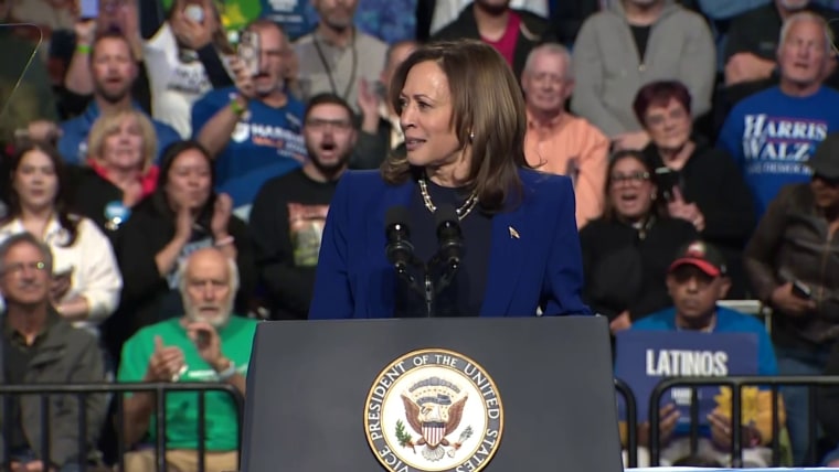 During her rally appearance in Reno, Nev., Vice President Kamala Harris's speech was interrupted by people shouting. Harris acknowledged them and said part of Democracy is about being heard.Nov. 1, 2024