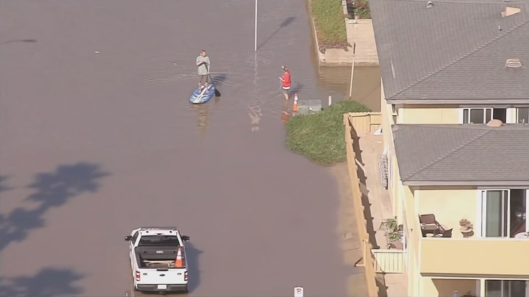 A stand-up paddleboarder took advantage of the flooded street in Oxnard, California, and surfers were excited to take on the 8 to 12-foot ocean swell but others weren’t so happy as sea water encroached on the neighborhood. KNBC’s Gordon Tokumatsu reports.Dec. 29, 2023