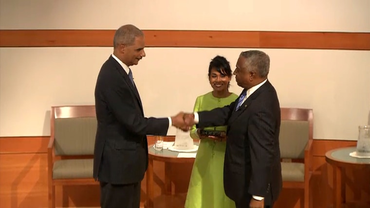 Attorney General Eric Holder swears in new head of the ATF Byron Todd Jones on Thursday.Aug. 29, 2013