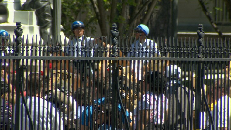 A group of immigration activists gather near the White House Thursday to protest deportations of Latino families.Aug. 28, 2014