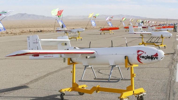 Iranian TV showed dozens of Iranian-made drones ready to participate in two days of military drills in the northern province of Semnan.Jan. 5, 2021