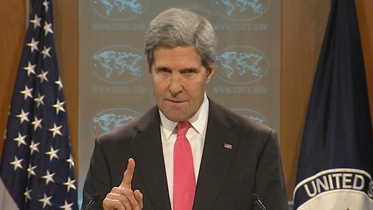 U.S. Secretary of State John Kerry talks about a U.N. report Thursday, detailing the type of rocket used in a chemical weapons attack in Syria on August 21st.Sept. 19, 2013