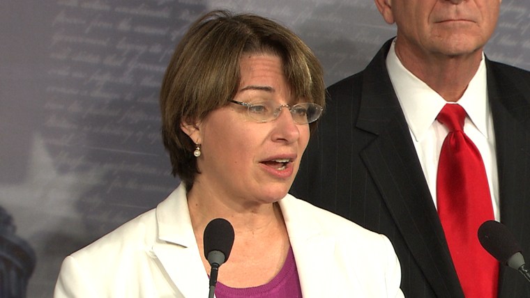 Sen. Amy Klobuchar speaks on Capitol Hill Thursday about her sponsored legislation to battle sex trafficking.Aug. 1, 2013