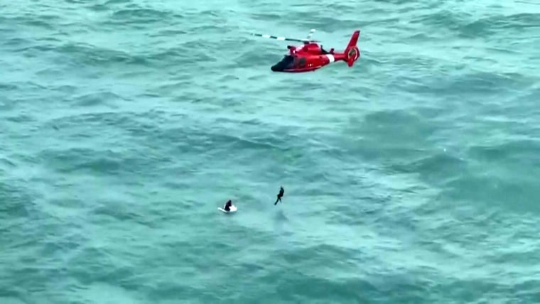 Coast Guard video showed the rescue of the captain of a fishing vessel who survived in stormy seas churned by Hurricane Milton in the Gulf of Mexico.Oct. 11, 2024