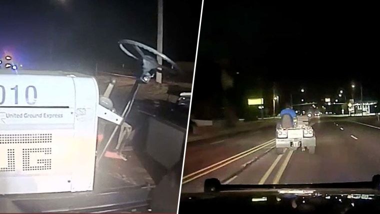 Watch: Police dash cam shows man flees police on airport baggage tractor