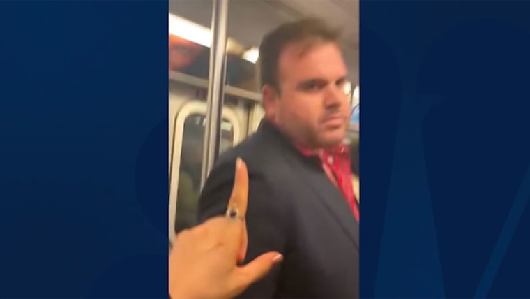 Video shows a man appearing to strike a Muslim woman on the NYC subway. Beforehand, the 23-year-old woman claims that he also snatched and broke her Palestinian flag. NBC News cannot confirm what occurred before the video was taken.Nov. 28, 2023