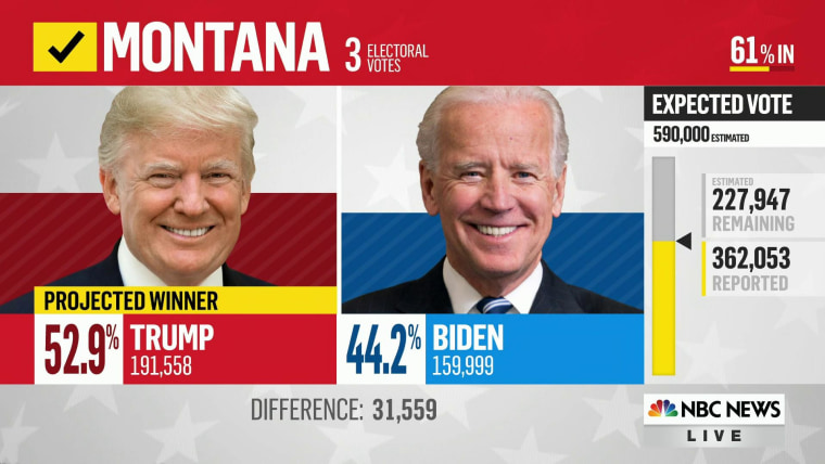 NBC News projects that President Trump will win Montana and Joe Biden will win Rhode Island in the 2020 presidential election.Nov. 4, 2020