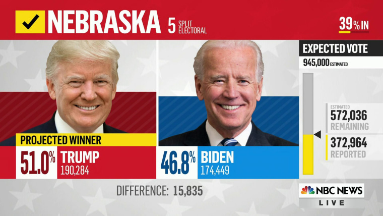 NBC News has projected that President Trump will win the state of Nebraska.Nov. 4, 2020