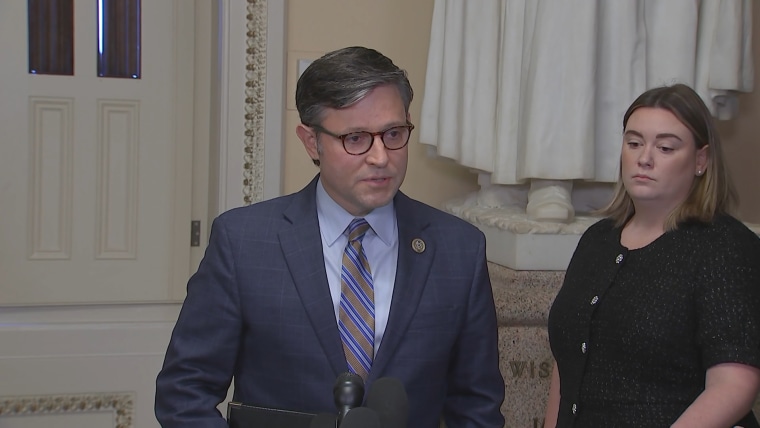 Speaker Mike Johnson, R-La., addressed the shootings in Lewiston, Maine, that killed at least 18 people, calling it a “horrific tragedy.”Oct. 26, 2023