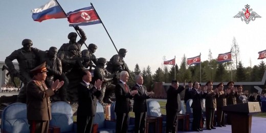 North Korean leader Kim Jong Un along with Russian officials in Pyongyang opened a memorial dedicated to North Korean soldiers who fought in Ukraine. According to the U.S. and Ukraine, North Korea deployed up to 12,000 troops to fight alongside Russia in the Ukraine war.April 27, 2026