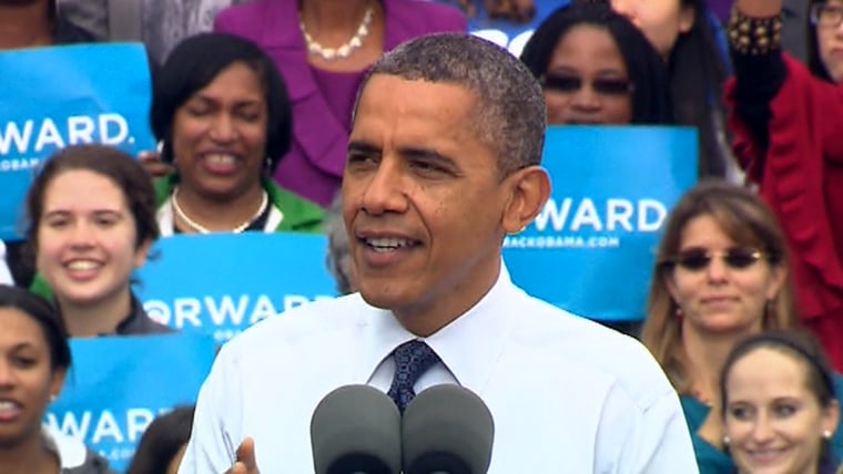 President Barack Obama speaks at George Mason University in Fairfax, Va., telling supporters that Governor Mitt Romney’s plan will squeeze the middle class.Oct. 19, 2012
