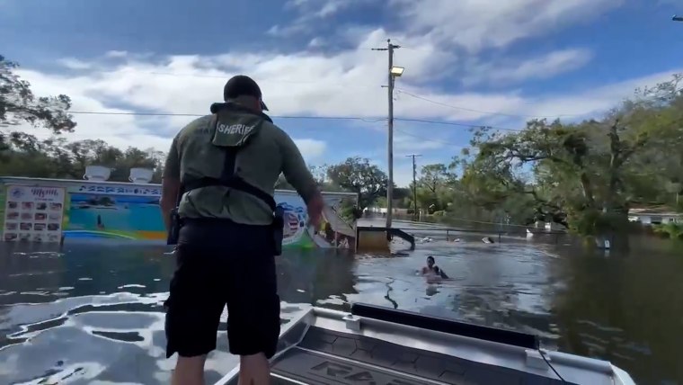 The Hillsborough County Marine Unit rescued a 14-year-old boy who was on floating debris from Hurricane Milton floodwaters.Oct. 10, 2024