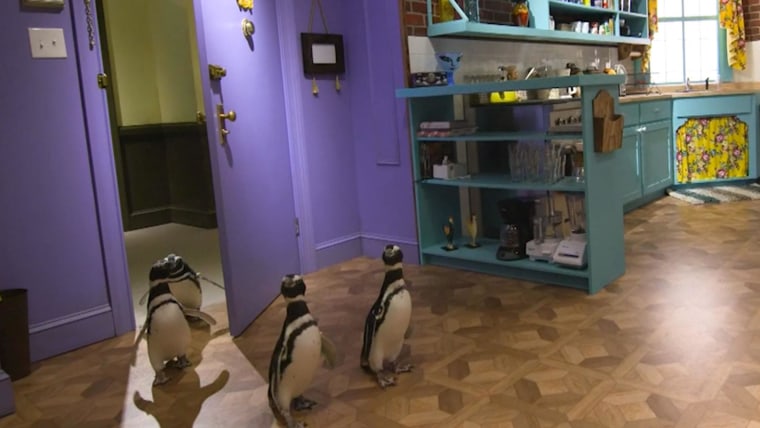 Four penguins from the Shedd Aquarium waddled through the "Friends Experience," a Chicago-based replica of the iconic TV show's set.March 3, 2021
