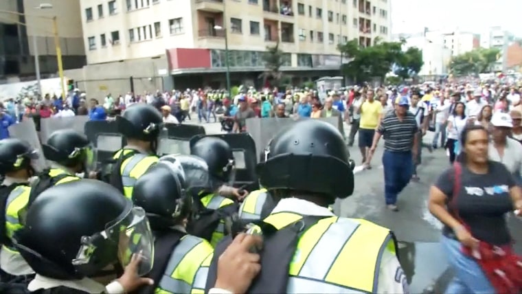 Security forces in Caracas tried to block a march by protesters demanding a recall referendum to end the rule of President Nicolas Maduro.May 18, 2016