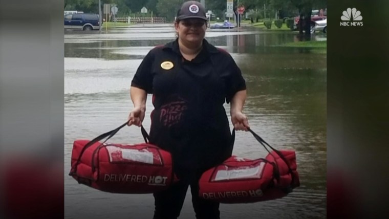 Shayda Habib, the manager of a Pizza Hut franchise in Oak, Texas, made sure housebound flood victims didn’t go hungry or that food at her shop went to waste.Sept. 2, 2017