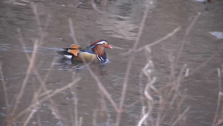 A Mandarin duck was spotted in a creek in Topeka, Kansas, at a park amongst other mallards.Dec. 31, 2021