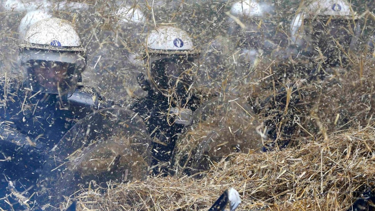 Riot Police Pelted With Hay as Farmers Protest Low Prices, High Costs