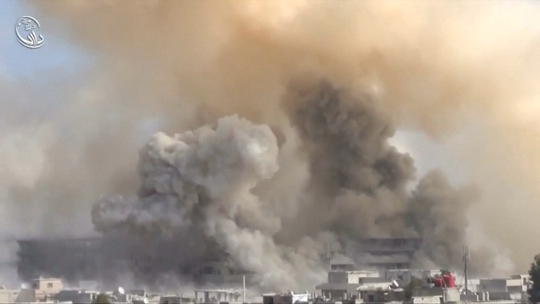 Social media footage purports to show Russian and Syrian military airstrikes on the towns of Daraya and Lattamna.Feb. 25, 2016