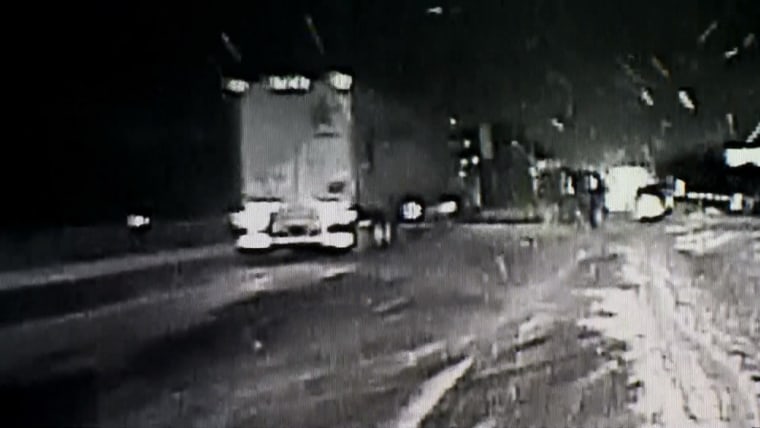 Dash cam captures a frightening scene as a semi-truck slams into squad cars that were responding to another jackknifed semi.Nov. 11, 2014
