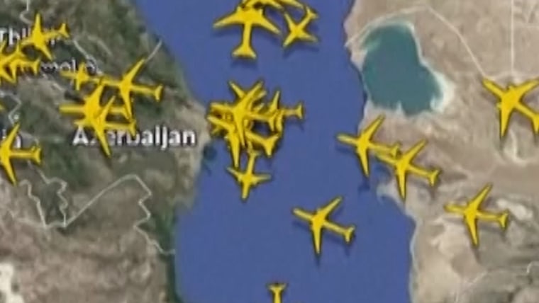 00:14 Flight animation shows planes avoiding Iranian airspace Feb. 28, 2026
