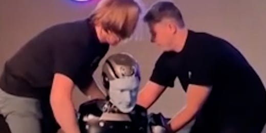 Russian AI robot falls face down on stage during debut