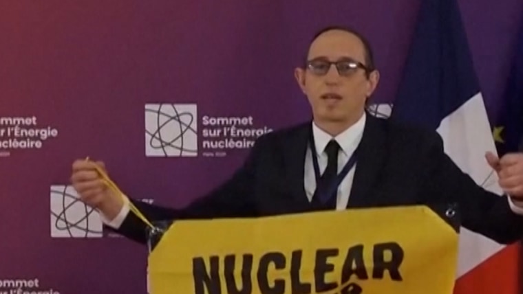 Protesters interrupt Macron during nuclear summitMarch 10, 2026